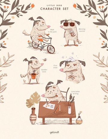 图穷联素材库 » 手绘可爱卡通的狗形象素材 One_Dog_Story_Cha