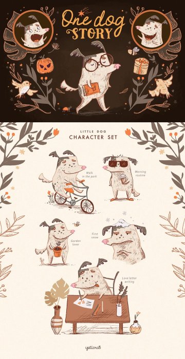 手绘可爱卡通的狗形象素材 One_Dog_Story_Cha