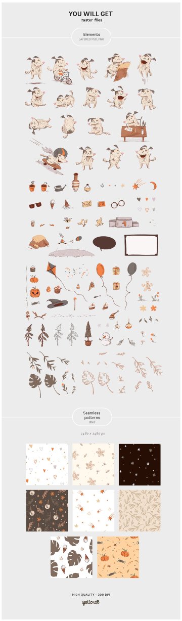 此套装是以相同配色方案创建任何系列的印刷品,广告信息或博客文章的不错选择。我们还为全年的主要假期添加了一些图形元素,如圣诞节,万圣节,情人节和复活节。它可以帮助您为任何场合设计主题贺卡,邀请函,贴纸,印刷品,杯子,文具和更多商品。