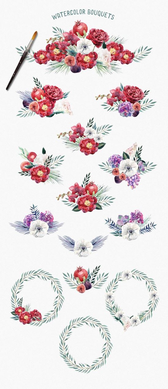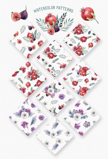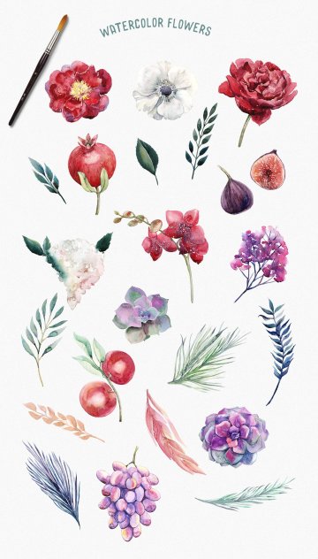 图穷联素材库 » 手绘水彩花卉水果插画素材 Watercolor Floral