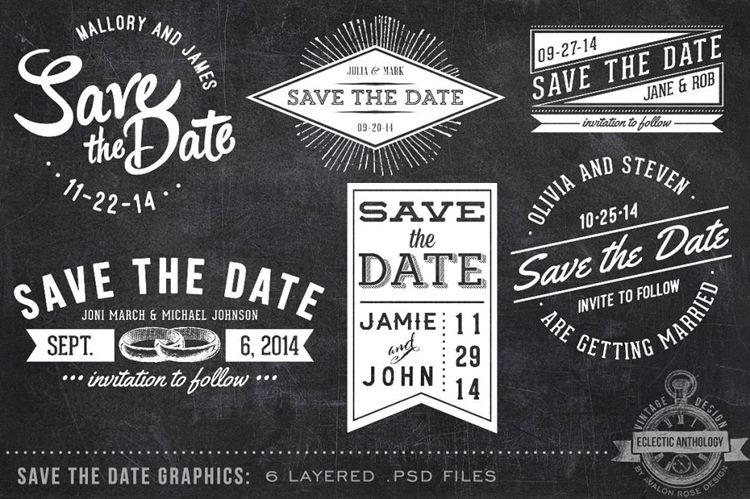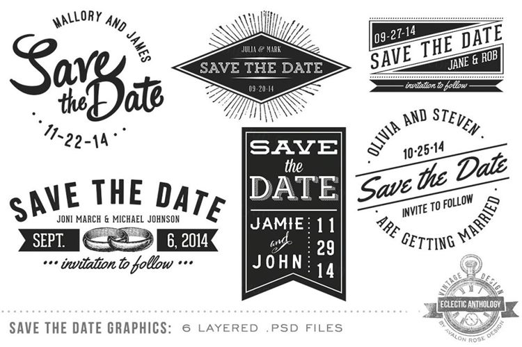 图穷联素材库 » 复古日期标签设计模板 Vintage Save the Da