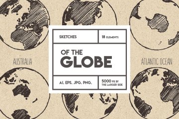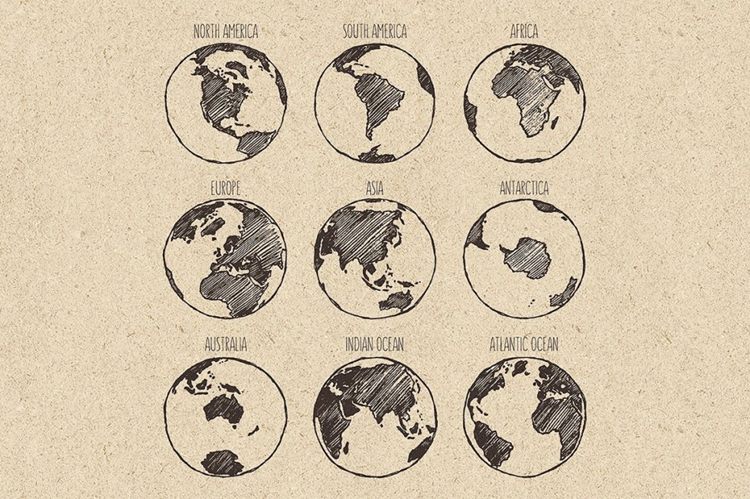 图穷联素材库 » 地球七大洲四大洋素描插图素材 Sketches-of-the