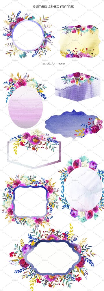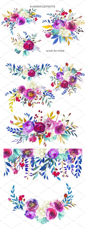 漫而明亮的水彩剪贴画集合包括花束,花圈,背景,框架,单独的元素,无缝模式和设计文件。非常适合婚礼,婴儿淋浴邀请卡,贺卡,printables,墙艺术,徽标,网页和博客设计,邀请等等。
