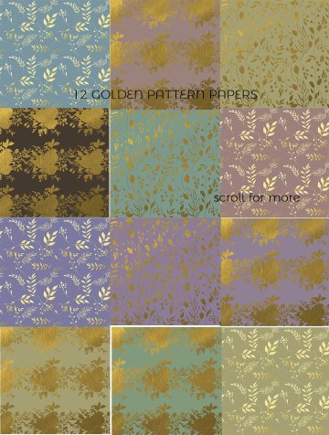* 12张JPEG金色图案纸 - 5000x5000像素