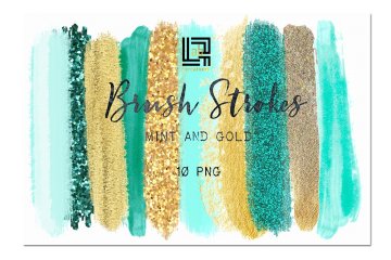 薄荷色金光闪闪的笔画剪贴画素材 Mint , gold gl