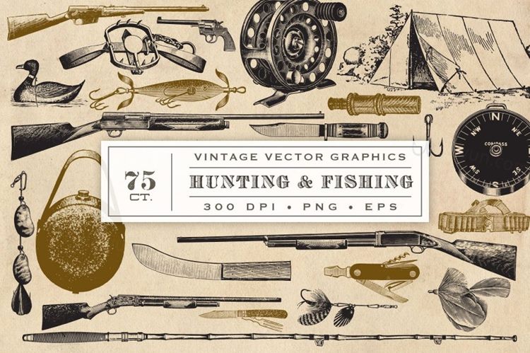 这一系列的75个老式狩猎,捕鱼和露营图像来自于1911年出版的古董目录(内部拥有)。它们被扫描,编辑和追溯到矢量形式,并在不干扰其完整性的情况下进行清理。古董图像。包括枪支,刀具,帐篷,指南针,鱼饵,露营装备,陷阱等。每个图形都以矢量.eps文件(CS2 +)提供,以及在最高或最宽点约6英寸处具有透明背景的单个.png文件。这些图像可用于许多不同类型的项目包括徽标,T恤和卡片设计。