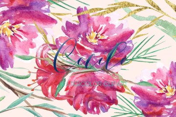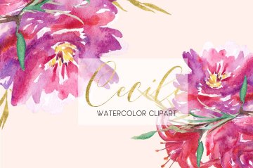 手绘水彩玫瑰花卉金色元素插画素材 Cecile.-Red-r