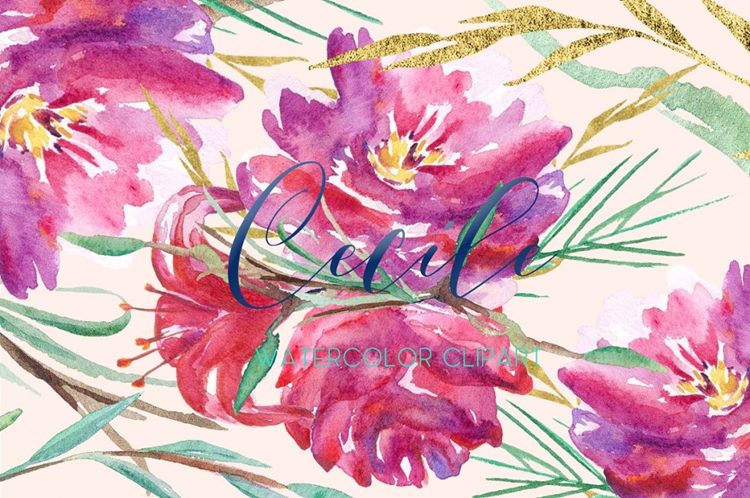 图穷联素材库 » 手绘水彩玫瑰花卉金色元素插画素材 Cecile.-Red-r