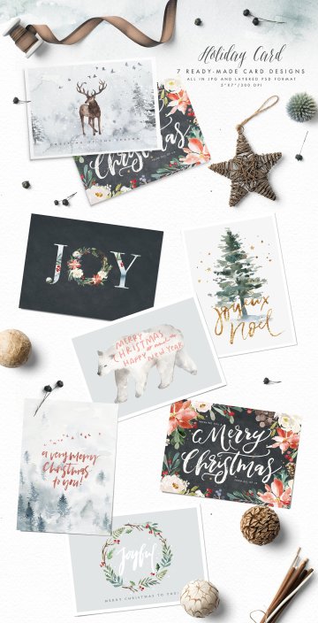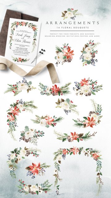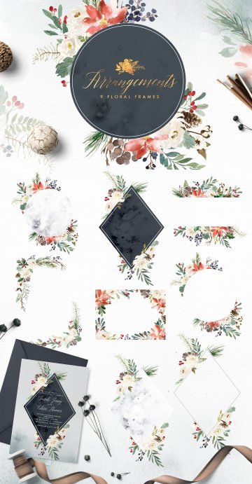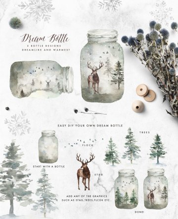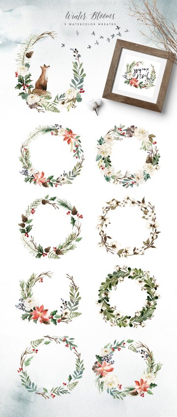 图穷联素材库 » 冬日圣诞主题手绘水彩装饰素材 Mystical-Winter