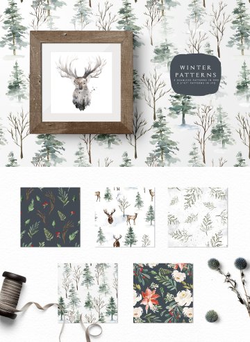 冬日圣诞主题手绘水彩装饰素材 Mystical-Winter