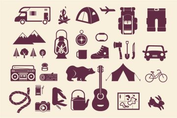 图穷联素材库 » 露营和徒步扁平风格矢量图标插图素材 Camping-Hiki