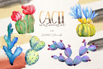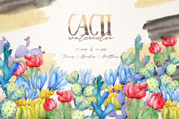 精美的热带仙人掌水彩图案边框画集 Cool colorful