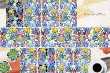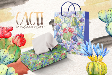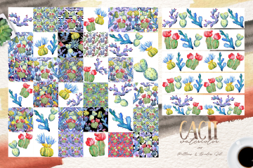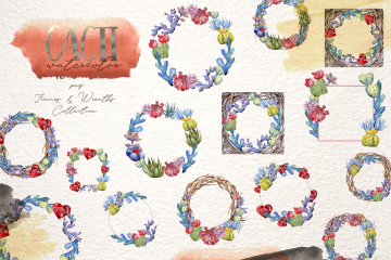 图穷联素材库 » 精美的热带仙人掌水彩图案边框画集 Cool colorful