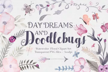 图穷联素材库 » 梦幻水彩手绘艺术花卉树叶插画 Doodlebug Clipa