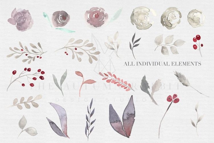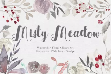 图穷联素材库 » 44独特的手绘花卉树叶水彩图案 Misty Meadow F