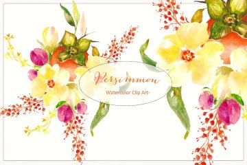 图穷联素材库 » 49水彩柿子水果花卉橘色艺术剪贴画 Persimmon Or