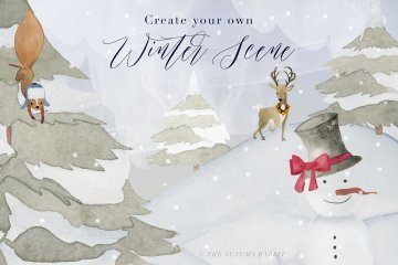 冬天冬季水彩场景设计素材包 Watercolor Winte