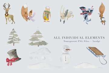 图穷联素材库 » 冬天冬季水彩场景设计素材包 Watercolor Winte
