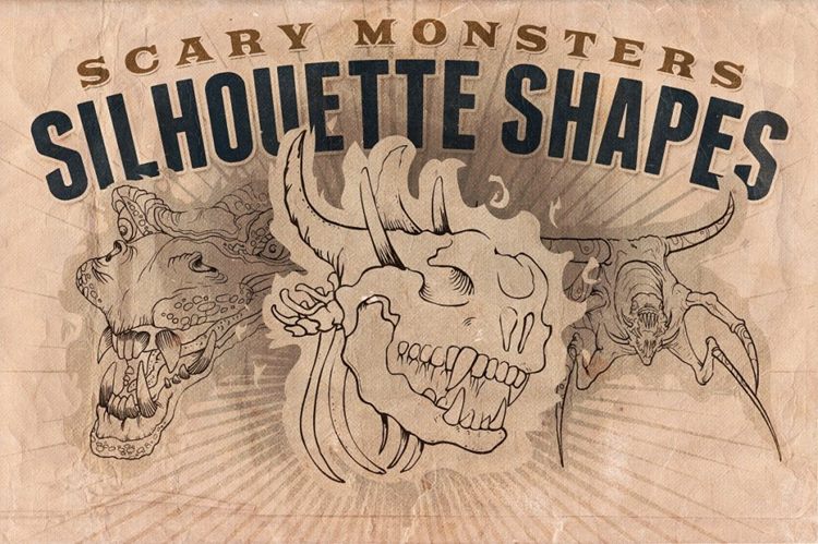 图穷联素材库 » 可怕的怪物轮廓图形插画 Silhouette shapes