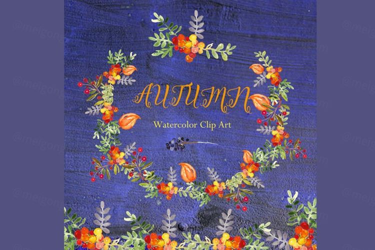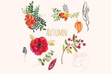 图穷联素材库 » 秋天成熟的果实水彩剪贴画 Autumn Watercolor