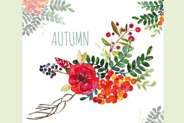秋天成熟的果实水彩剪贴画 Autumn Watercolor