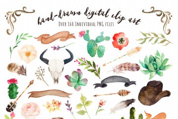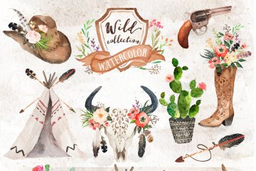 图穷联素材库 » 美国西大荒元素水彩素材 Watercolor Wild We