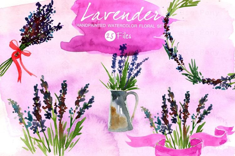 图穷联素材库 » 紫色水彩薰衣草插画设计素材 Lavender Set - W