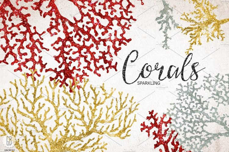 深海类波光粼粼海洋珊瑚生物插画 Sparkling cora