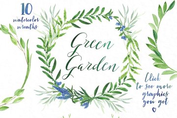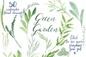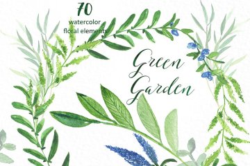 图穷联素材库 » 绿色花园水彩素材集 Green garden. Waterc