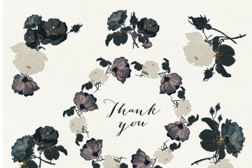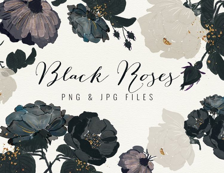 图穷联素材库 » 高雅黑色玫瑰手绘水彩剪贴画 Black Roses