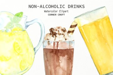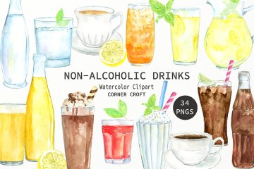 图穷联素材库 » 非酒精饮料水彩画插图 Watercolor non alco