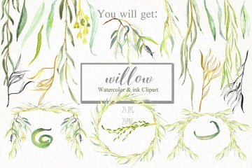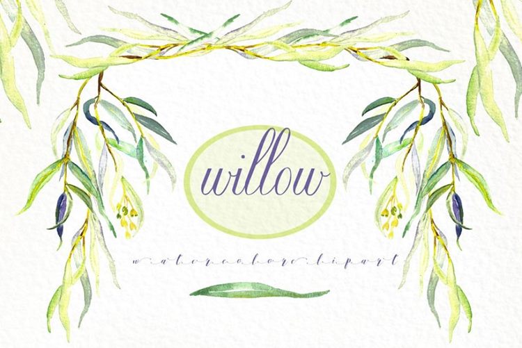 图穷联素材库 » 柳枝水彩剪贴画 Willow branches waterc