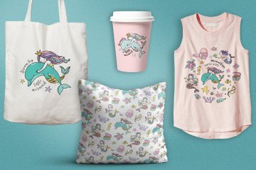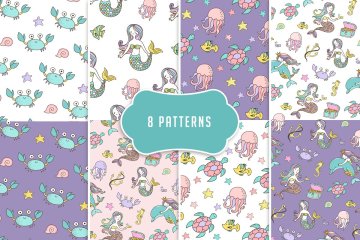 图穷联素材库 » 小美人鱼与海洋生物元素及贺卡模板 Little Mermai