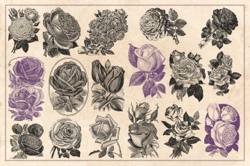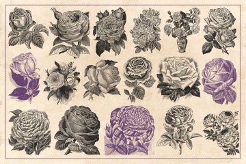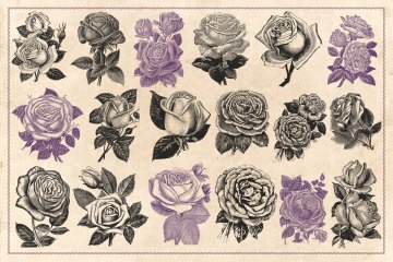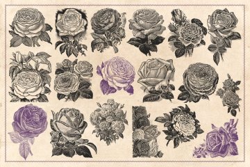 图穷联素材库 » 70款手绘怀旧风格的玫瑰花矢量素材下载70 Vintage