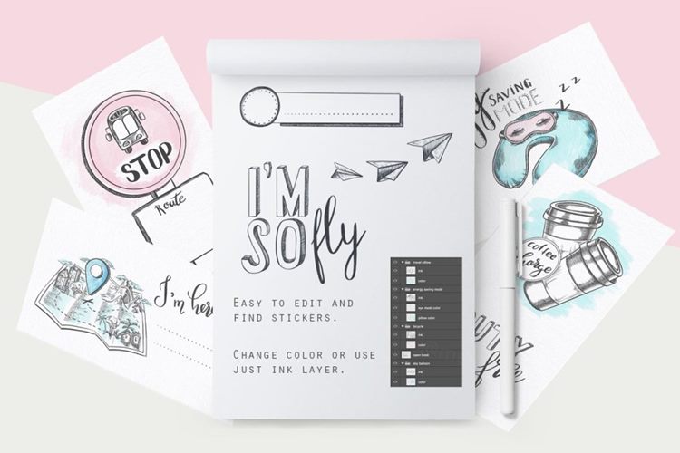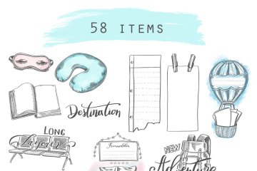 图穷联素材库 » 58款手绘旅行贴纸打包下载Hand drawn travel