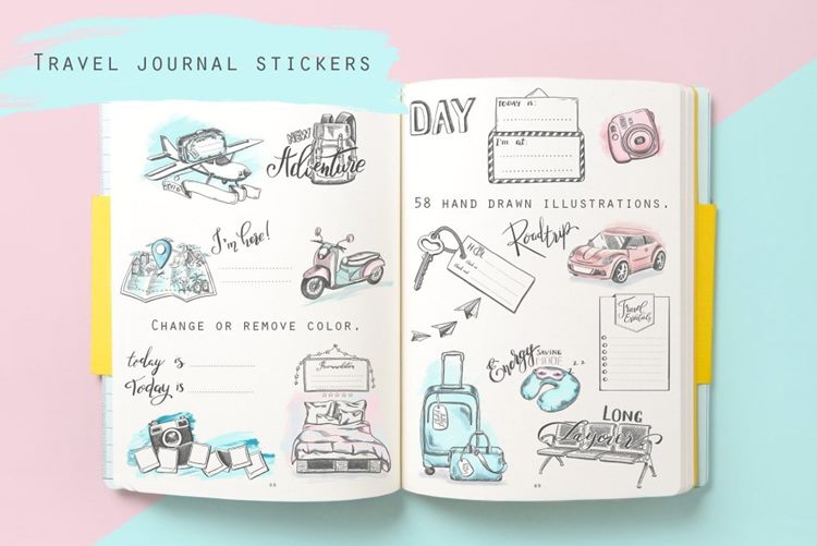 58款手绘旅行贴纸打包下载Hand drawn travel