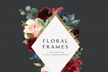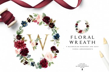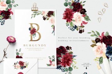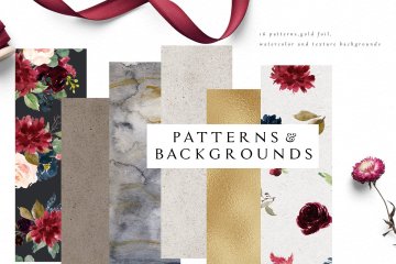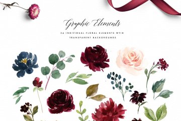 图穷联素材库 » 水彩花卉素材 Burgundy Navy Floral Gr