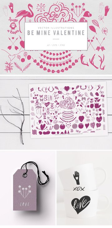 图穷联素材库 » 情人节粉色手绘矢量图形 Be Mine Valentine