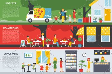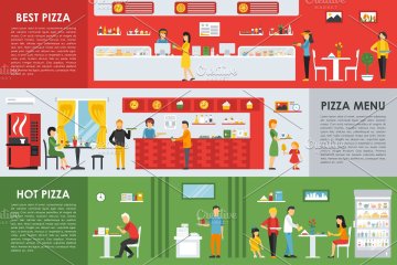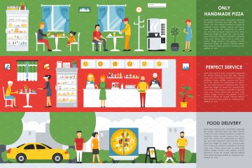 外卖披萨餐厅内部展示服务概念平面插图 Pizzeria Fl