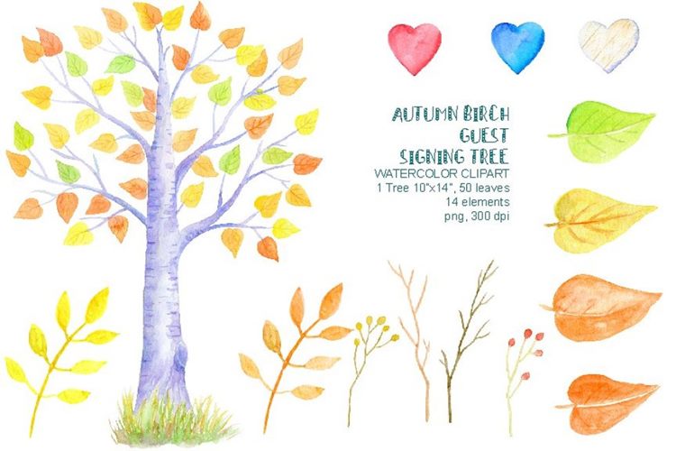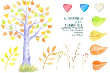 图穷联素材库 » 水彩秋季桦木客人签名树插画 Autumn Birch Gue