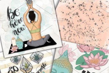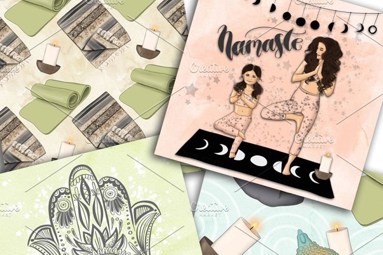 图穷联素材库 » 瑜伽经典合十礼动作数字纸张插画设计 Namaste Digi