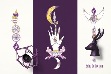 图穷联素材库 » 紫色波西米亚风系列水彩插画 Purple Boho Coll
