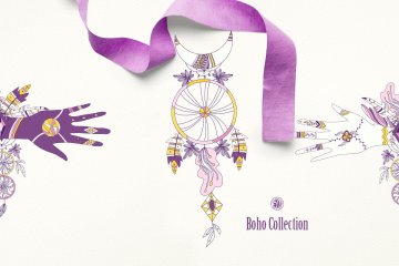 紫色波西米亚风系列水彩插画 Purple Boho Coll