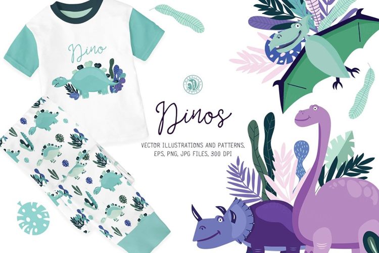 图穷联素材库 » 可爱卡通手绘恐龙插画设计素材 Dinos