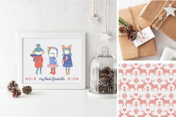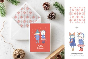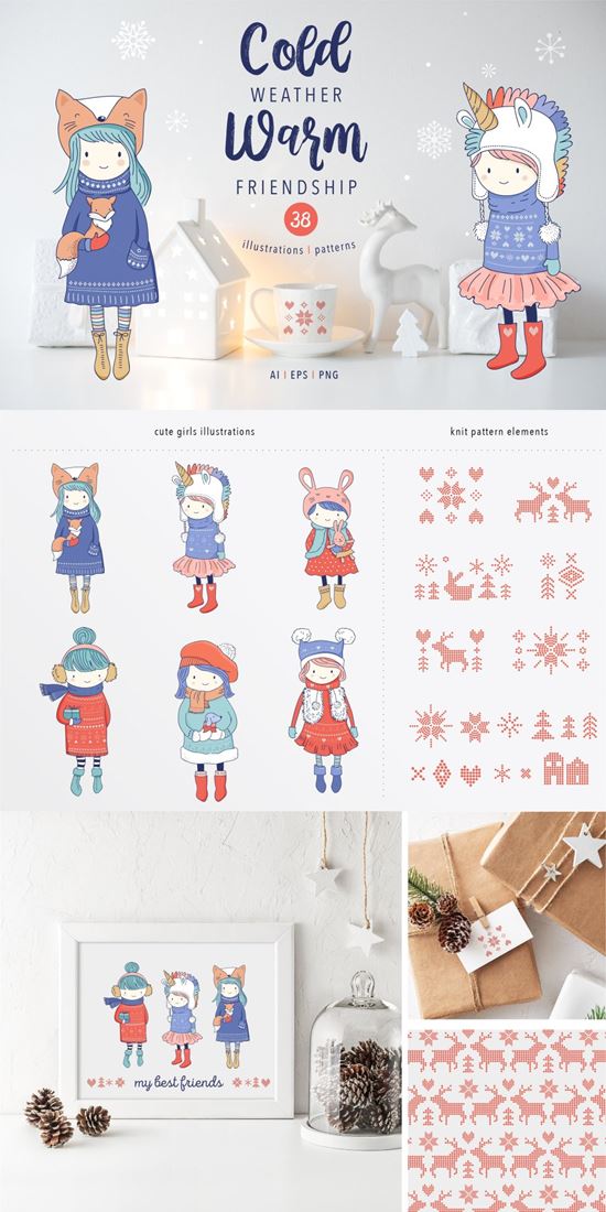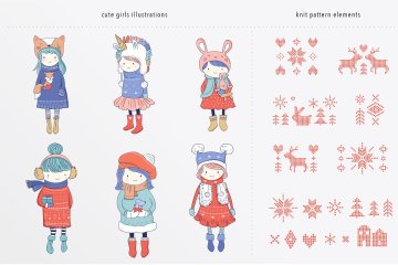 图穷联素材库 » 可爱的卡通冬装女孩手绘插画 Cold weather , W