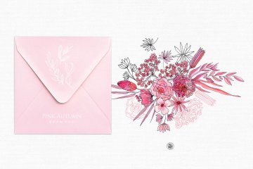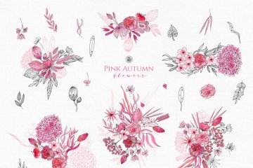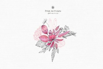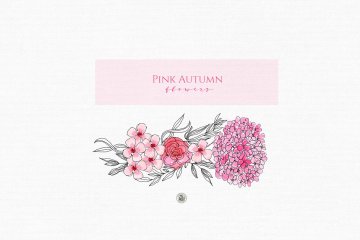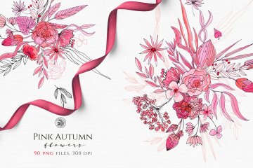 图穷联素材库 » 粉红水墨秋季水彩花卉插画 Pink Autumn Flowe