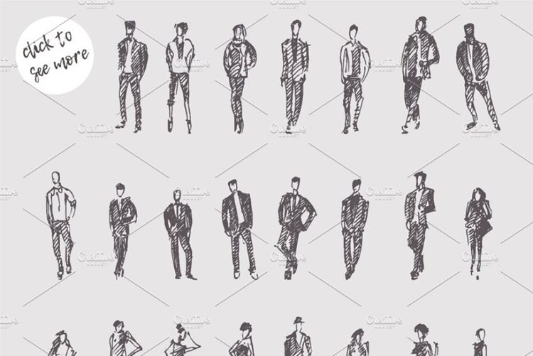 图穷联素材库 » 素描人物形象矢量剪贴画 Sketches of differ