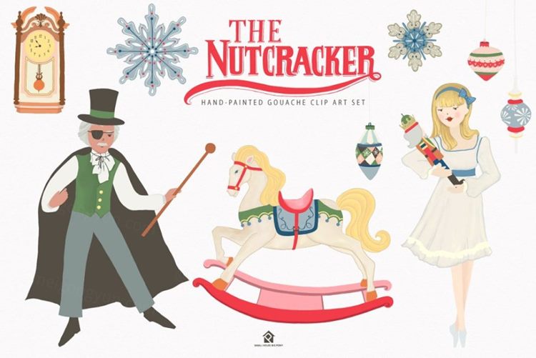 图穷联素材库 » 手绘胡桃夹子芭蕾舞童话水粉插画 The Nutcracker