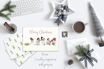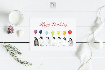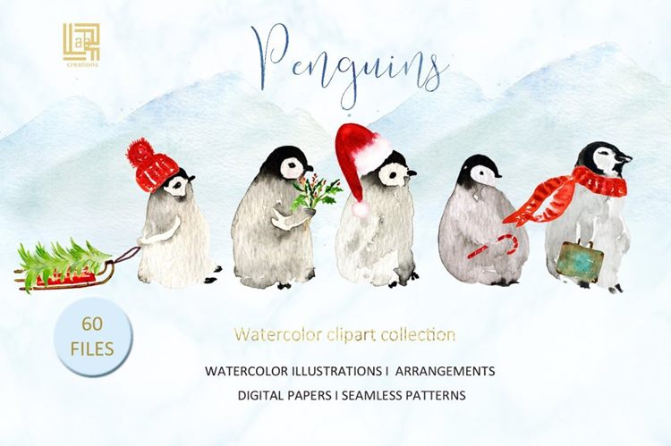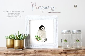 图穷联素材库 » 可爱的水彩手绘企鹅插图 Penguins. Watercol
