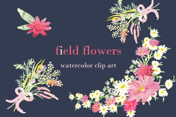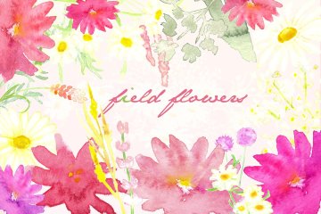 图穷联素材库 » 手绘水彩白色雏菊野花剪贴画 Field Flowers wa